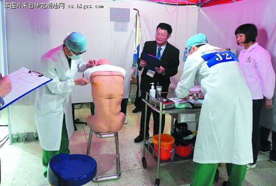 清理伤口、心脏按压、穿刺……4月10日,第三届全国大学生临床技能大赛华南赛区分区赛在汕头大学医学院举行,来自广东、广西及海南12所高等医学院校的“准医生”代表们进行了一场紧张刺激的“PK”赛,同台“较量”临床医疗技能(上图)。