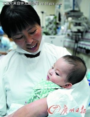 昨日下午,记者在广东省人民医院儿科ICU的病房再次见到了陈桂芬,经过手术治疗后,她今日就可出院。这次小芬不再需要躺在挂满监护仪的保温箱里,而是躺在妈妈的臂弯里,面容清秀的小芬,圆圆的眼睛咕噜噜转,不断对着前来探访的媒体记者笑。