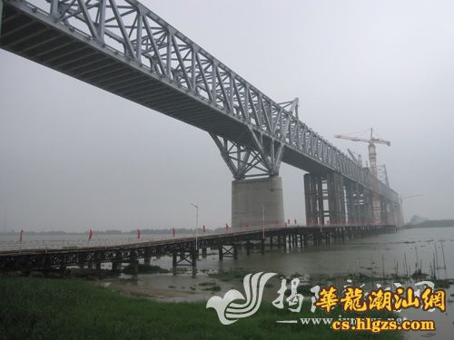 为推动厦深铁路揭阳段建设进程,确保落实市政府百项重点工作相关任务,围绕“厦深铁路2013年10月建成通车”的总目标,市交通运输局高度重视,主要领导多次带队到施工现场进行考察调研,针对碰到的困难制定多项应对措施,多管齐下加快推进工程进度,使大部分停工的施工项目重新运作起来。近日,记者来到榕江特大桥工地采访,看到了一派繁忙的施工场景:各种机械穿梭不停,施工人员加紧作业……据介绍,榕江特大桥经延孔后全长7964米,投资约10亿元,横跨江面850米,主桥通航净高38米,主跨跨度在同类型桥梁中居亚洲第一,工程集“高、大、难、新、深、急、险、重”八大特点于一身。记者看到,目前大桥漂亮的英姿初现,其带来的视觉冲击效果令人震撼。