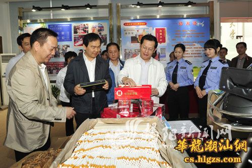 昨天会议召开之前,陈绿平带队参观了市“三打”专项行动成果展,陈绿平充分肯定这次“三打”专项行动成果展。他指出,成果展展示了揭阳市“三打”工作的成效,展示了揭阳市开展“三打”行动的决心,也提醒我们要时刻警惕、铁腕整治。要通过让干部群众参观成果展,增强辨假识假能力,调动广大干部群众参与“三打”行动的积极性,确保揭阳市“三打”专项行动打出实效。