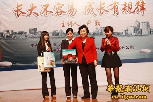 4月21日下午,由市教育局与汕尾移动公司共同举办的2012年第一期全球通VIP“名家讲堂”在市科技文化中心开讲,讲坛邀请到了我国著名的亲子教育专家卢勤老师为汕尾市近千名观众带来一场精彩的《长大不容易,成长有规律》讲座。