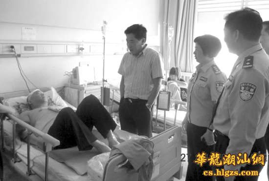 有关部门领导看望被拖行近百米受伤住院治疗的洪永海。