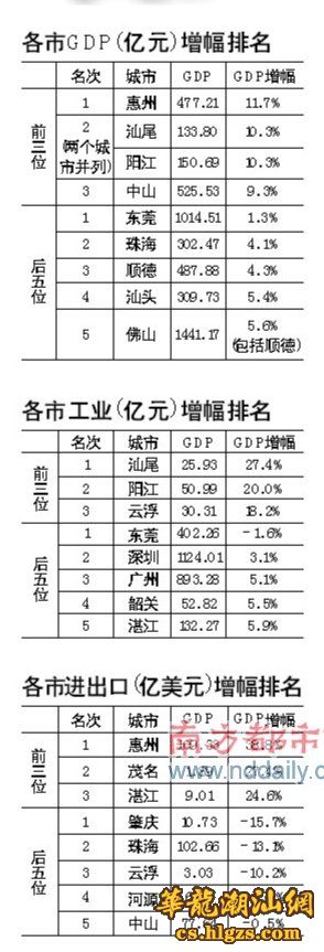 林江表示,东莞一季度G D P和工业的不景气,对全省的整个盘子不会有太大影响,但对东莞在全省的位置,会有一些影响。南都记者发现,与东莞以1 .3%全省垫底形成反差的是,佛山G D P保持了5.6%的增速,在G D P数值上,大约相当于东莞的1.5倍。而对东莞形成追兵之势的惠州夺得全省增速第一的桂冠,一季度G D P增长11.7%;中山也有9.3%的增长。惠州和中山的G D P数值,大约相当于东莞的一半。