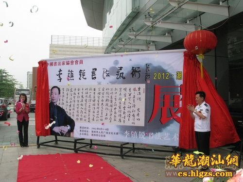 在展厅中,李镇锐以欧、颜、赵、行草、篆、隶等字体创作的书法作品,向参观者展示一位潮州警察在传统文化艺术上的素养。在文化长廊的两个展厅中,细赏着李镇锐几十年勤练书法所创作的书法作品。当观尽其酣畅淋漓的行草作品后,细赏以朱砂写于绢上的蝇头小楷《千字文》、《多心经》时,见其满卷端方绵密,而娟婉湿润之姿,与先观的行草作品,大赞其创作的恒心和毅力。主办单位希望通过举办这样的展览,让市民从文化层面了解到一位为维护潮州社会治安的人民警察,在完满完成各项维稳任务的同时,也为潮州文化建设添砖加彩!潮州市政府副市长、公安局长杨志明说:潮州公安部门中,会书画创作的警察还有很多,类似这样的展览,以后还会再组织开展。这样的展览,更能拉近警民距离,融洽警民关系。 李镇锐,一九五五年七月生于广东潮州,一九七四年十二月入伍,海军南海舰队航空兵部,历任战士、排长、连长、作训股长、团副参谋长、参谋长、副团长、雷达兵处副处长。曾就读于桂林陆军学校、武汉空军雷达学院、海南师范学院,一九九五年转业。现供职于潮州市公安局。系中国书法家协会会员、中国书画艺术家协会副主席、中国工艺美术家协会会员、广东省文化学会理事、广东省书法家协会会员、香港潮汕国际书画总会会员、潮州市书法家协会原常务理事。 作品被《中国书书名家名作典藏》、《中国现代书画篆刻界名人录》、《当代书书家新作汇赏》、《当代书画家珍迹选辑》等几十部大型画朋收录。个人艺术简介在2007年出版《盛世广东》做了专题介绍,被授予“中国当代书画名家”和“中国当代最具影响力书画家”称号。