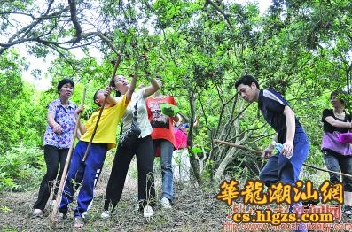等周边地区不少男士开车带着家属成群结队到潮安县文祠镇鸭背村采摘杨梅,以郊游的特殊方式给母亲们过节。图为昨天下午游客们在村后山上的梅林中采梅尝梅的欢乐场景。