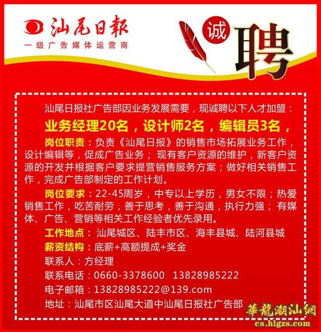 汕尾日报社招聘信息