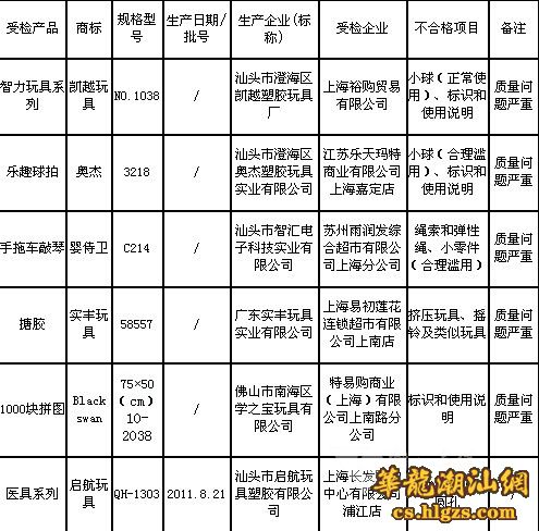 汕头5家玩具企业上榜不合格名单