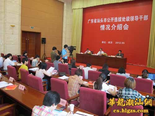 在情况介绍会上,市委组织部领导向与会媒体介绍了汕头经济社会发展情况,重点就汕头市此次面向全国公开选拔10名市直单位正副处级领导干部的目的意义、具体职位、报名资格和条件、工作程序做了详细介绍,并回答了记者们的有关提问。人民日报、光明日报、经济日报、中新社等中央媒体,湖北日报、湖北之声、湖北卫视等湖北省、武汉市媒体应邀出席了本次情况介绍会。新浪网、荆楚网、汉网等网站媒体也进行了详细报道,在湖北特别是武汉市引起了关注。