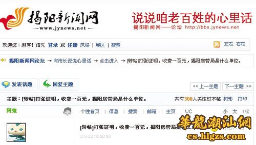 近日,网友“甜辣”在网上提出 “打张证明,收费100元,揭阳市房管局是什么单位?”的询问,记者就此问题采访了市房管局有关负责人。