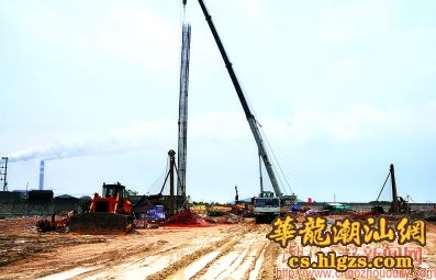 潮州港进港公路建设工程一、二、三标段建设进展顺利。截至5月底,工程累计完成投资3.0695亿元。其中第一标段已完成合同投资额的94%,力争6月份完成主体工程的施工。第二标段正在调整施工进度,确保10月底前完成工程施工任务。第三标段正在实施换填路段筑石方和桥桩钻孔施工,桥梁桩基已开始施工。图为第三标段施工现场。