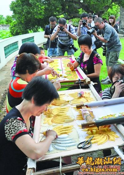 日前,潮安县江东镇洲东村几位在村口绣花的女工“吸”住了一群前来采风的摄影爱好者的镜头。据了解,抽纱刺绣一直是该村的主要传统手工副业,村里的妇女多能工善绣,上世纪70年代有集体创作的大型玻璃纱台布“双凤朝牡丹”被人民大会堂收藏。目前,该村正在申报省非遗刺绣生产基地,全力以赴创建刺绣文化名村,借机保护和发展这项曾为村里带来荣誉的传统手工业。