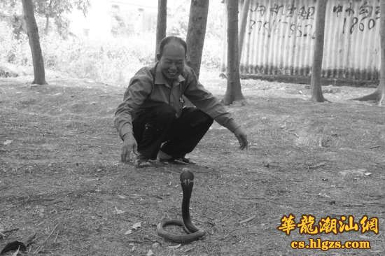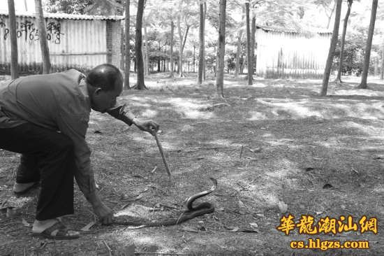 采访时,记者就亲眼见识了陈瑞田捕蛇的经过。面对一条不断喷着毒气的大眼镜蛇,陈伯沉着应对,不到一分钟就轻松擒住了剧毒眼镜蛇。