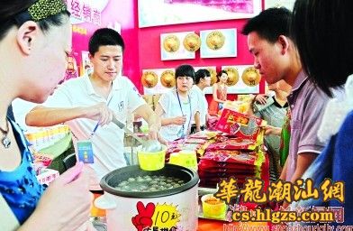 而更引发武汉市民参观、购买热情的无疑还是具有浓郁地方特色的潮州食品,真美、康辉、济公、展翠等食品企业的展位前人头攒动,把展位围了个里三层外三层。现年76岁、家住汉口的郑大爷和老伴正在试吃“济公开胃丹”,他捏着两颗褐黑色的开胃丹扔进嘴里,咂巴了几下后竖起了大拇指,“真好吃,凉拔拔,甜丝丝,生津醒神,比口香糖好吃多了。”说完,便要销售人员帮他包了四瓶,“天气热,放在家里冲水当茶喝,既消暑又解乏,很不错!”