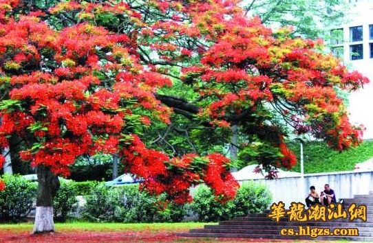 在汕大校园,记者看到,教学楼前盛放的金凤树犹如一把鲜艳夺目的大保护伞,树枝上的红叶开得绚烂、相互争艳,落地的花瓣鲜红似火,与绿草相互映衬。在金凤树下,学生们相聚一起,轮流与这棵“地标性”植物合照,用火红的颜色记录下自己的青春光影。记者随后又来到市区海滨路,这里的金凤树树木之多同样让人目不暇接。