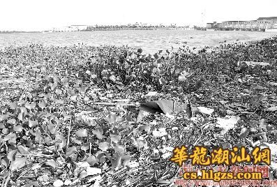 昨天下午,在韩江市区段潮州供水枢纽附近,大量的水浮莲夹杂着一些生活垃圾汇聚堆积在一起,不仅有碍观瞻,也对周围的水质造成一定的污染。市民希望有关部门组织人力,赶紧打捞这些漂浮在江面的水浮莲。 本报记者 陈宏文 摄