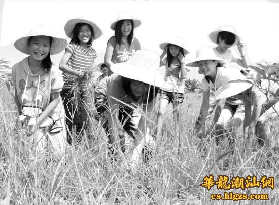 本报讯 (记者 方晓F 通讯员 姚军 实习生 裴蕾 摄影报道)7月3日,金平区D莲街道天港小学的3至5年级学生利用暑假到汕头市泽涛学生劳动体验园为庄稼拔草、聆听园长——79岁的李正容奶奶讲劳动的故事,学生们通过劳动体验度过暑期快乐的一天。