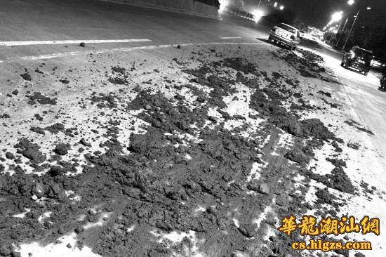 昨天上午,记者了解到,前晚接到市民反映后,龙湖区环卫局立即到现场查看,但至今仍未找到肇事淤泥运输车所属施工单位,估计由于路面颠簸,运输车的阀门口松动,淤泥沿路漏出撒得满地皆是。为了减少淤泥对交通产生的影响,龙湖环卫部门10名保洁员连夜对路面实施清扫,恢复路面清洁。由于淤泥粘性很强,扫帚根本无法正常作业,环卫工人只能借助铁锹等工具徒手将淤泥铲除运走。除连夜人工清扫外,昨天环卫部门还运水对路面进行清洗。