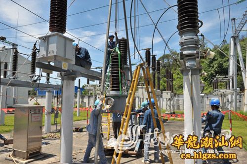 供电局全力保证电力设施的安全运行和电力的正常供应。图为该局员工对仙桥站11PT进行应急处理。林树希 摄