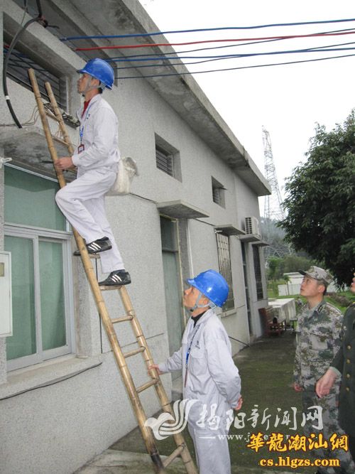 去年底,揭阳供电局被省委、省政府、省军区授予“爱国拥军模范单位”荣誉称号,成为我市唯一获此殊荣的单位。他们把荣誉当成拥军路上的新起点,继续发挥自身优势为驻军官兵排忧解难。图为近日该局派出职工义务为解放军驻揭某炮团维护营区供电线路,确保部队工作、生活正常。林春晓 马晓华 摄