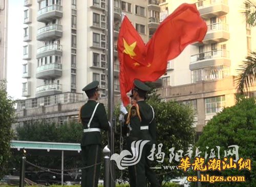 昨天是“八一”建军节,武警揭阳市支队在支队机关大院隆重举行升国旗仪式,进一步弘扬我军“听党指挥、服务人民、英勇善战”的优良传统,激发全体官兵爱党爱国热情,始终牢记我军“全心全意为人民服务”宗旨,以优异的成绩迎接党的十八大胜利召开。陈坚朋 东岳 摄