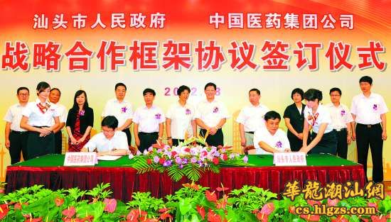 本报讯 (记者陈静莹)昨天上午,汕头市政府与中国医药集团总公司签订战略合作框架协议,开启双方携手合作的大门,这将为我市医药产业发展带来新的强劲动力,有效推动我市医药产业转型升级,迈向更高水平。中国医药集团党委书记、副董事长王丽峰出席签订仪式。市委副书记、市长郑人豪在仪式上致辞,表示将为国药集团在汕头的业务发展创造更加有利的条件,提供优质高效的服务,实现互利共赢,共同发展。