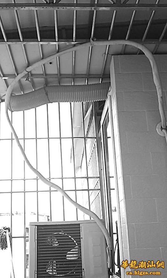 本报讯(记者 许玉璇 摄影报道)近日,住在利安花园的陈先生新装了一台空调,他的邻居来访时发现,陈先生安装的空调与他家的位置一模一样,连接管却被多装了两米多(如左图),不但影响了制冷效果,还浪费了近两百元的材料费。