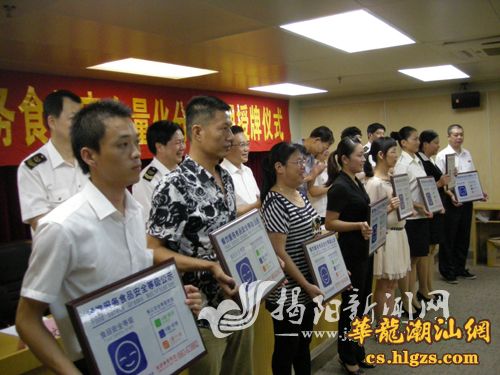 我市餐饮行业“两建”工作取得了良好开局,昨天下午,我市举行首批餐饮服务食品安全量化分级管理授牌仪式(见下图。邢晓荣 摄),市直机关第一食堂、榕江大酒店有限公司、金潮轩食府有限公司等3家餐饮单位被授予A级牌匾,另外还有163家B级餐饮单位被授予牌匾。