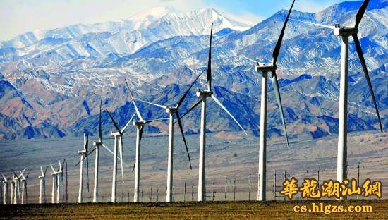 这是座落在甘肃省阿克塞哈萨克族自治县境内阿尔金山脚下的当金山风电场,它是我国海拔3000米以上的高原示范风电场(2012年2月20日摄)。