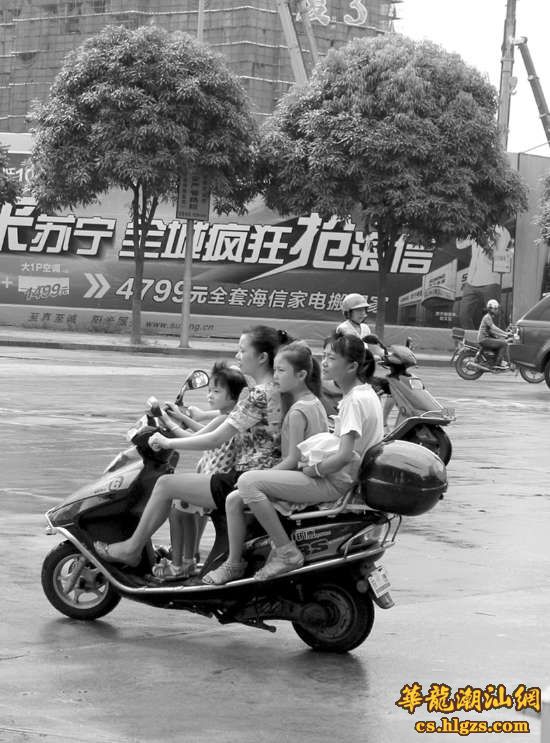 近日,记者在市区多个路口观察发现,电动自行车的交通违法行为十分普遍。在许多安装了监控设备的十字路口,几乎所有汽车会停下来等红灯,但绝大多数摩托车和电动自行车虽然会减速,但不会停下来,而是见缝插针与其它正常通行的车流抢道。此外,电动车超载的现象也很突出。在衡山路与长江路交界处,记者看到一辆白色的电动车,女驾驶员不仅在后座搭载了一名女青年,在身前还“塞”进一个五六岁的孩子。轻巧的电动车在3个人的重压下摇摇摆摆力不从心,但女驾驶员依然一路风驰电掣,不知别人在为她捏着一把汗。