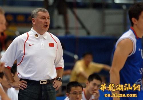 中国队主教练尤纳斯(左)在场边指挥。当日,2008年斯坦科维奇杯洲际篮球赛在杭州开赛,中国队在首场比赛中以96比72战胜塞尔维亚队。 新华社记者徐昱摄