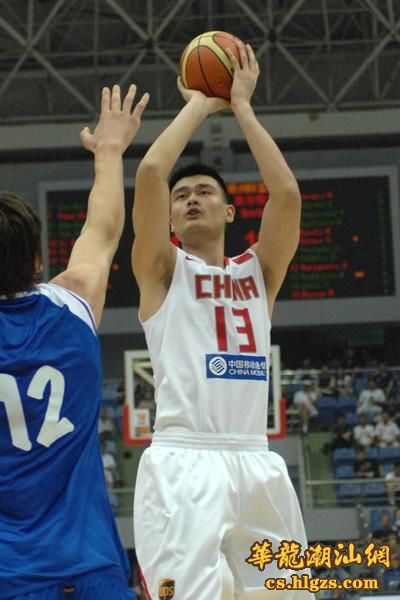 7月17日,中国队球员姚明在比赛中。