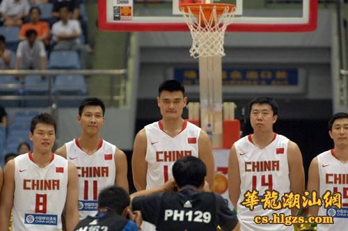 中国队球员在赛前合影。当日,2008年斯坦科维奇杯洲际篮球赛在杭州开赛,中国队在首场比赛中以96比72战胜塞尔维亚队。 新华社记者徐昱摄