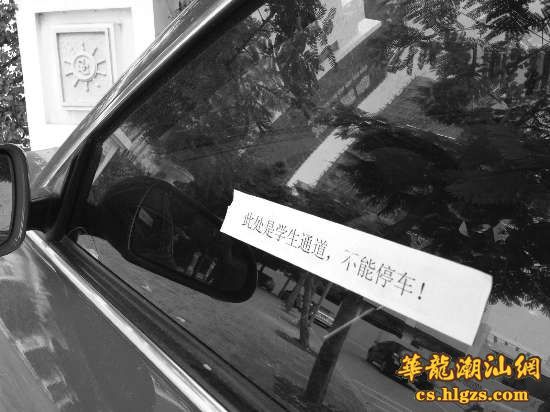 昨天,停放在步道上的车辆都被贴上一张纸条,上面打印着“此处是学生通道,不能停车!”。车主们发现后,基本都把车开走,不过同时也发现,小纸条贴在玻璃上并不容易清理,很难把上面的不干胶彻底弄干净。有车主询问了一番,但也问不出到底是谁贴的纸条。个被车主认为,自己将车停在步道上确实不对,特别是开学后会影响学生上下学,有关方面做出这样的“提醒”可以理解,但不管物业部门还是校方,采取类似的“提醒”不妨“斯文”一些,比如可以将纸条夹在汽车的雨刷上,不至于在车窗玻璃上留下难看的痕迹。