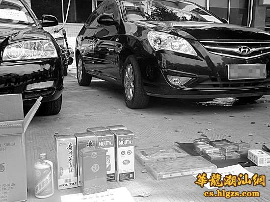 本报讯 记者刘文钊摄影报道:8月30日晚,龙湖警方与金平公安分局联合开展治安防控整治统一行动,打掉一个专门撬汽车玻璃窗盗窃车内财物的犯罪团伙,抓获黄某等5名团伙成员及涉案人员王某萍等4名,缴获作案小汽车2部、摩托车1部、羊角撬1把、大号钢钉1把及茅台酒等赃物(见图)。