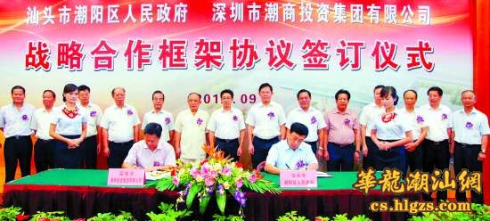 本报讯 (记者林馥盛、刘谷婷 通讯员陈春晖)昨天上午,潮阳区人民政府与深圳潮商投资集团有限公司战略合作框架协议签订仪式在市委会议厅举行,双方将合作建设厦深铁路潮阳站周边路网及配套设施建设项目,这是深圳潮汕商会与汕头合作的第一个项目,不仅充分体现了深圳潮商对我市未来发展的信心,也体现了潮籍乡贤致富不忘反哺家乡、造福桑梓的赤子之情。双方合作将为我市高标准、高起点做好厦深铁路潮阳站的规划建设,全力打造粤东地区综合交通枢纽和商贸物流中心,推动潮阳乃至汕头经济发展发挥积极作用。