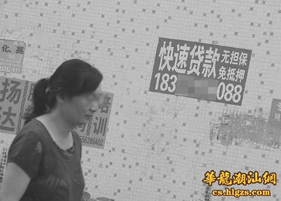 本报讯(记者林子海 林鹏 实习生马嘉琳 摄影报道) 街头出现的“信贷”广告越来越多,到底有多少是“真货”,多少是骗钱的“黑坑”呢?近日,急于资金周转的市民王女士差点被街头“贷款”街招忽悠,幸亏最后关头被朋友提醒才不致破财。