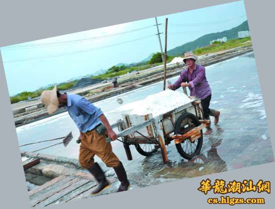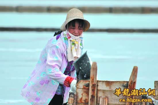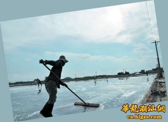 虽说一年四季都可以晒盐,但是在日头最毒辣的夏天,对晒盐人来说却是个黄金季节。行走在盐田中,记者观察到,烈日爆晒着盐田中的海水,海水上面漂浮着一层白白的盐花。记者随便捞起一块放入口中一舔,咸而不苦;再将手指浸入盐水中,明显感觉到有点烫——这大热天,晒盐人却包得严严实实,他们头戴草帽,脸部裹紧毛巾,身着长袖长裤,脚着塑胶雨鞋……他们身上的衣服早已湿透,却还是一刻不停地使用盐耙等工具埋头苦干。