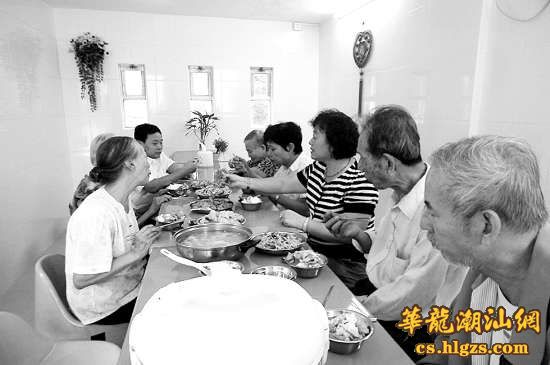 中午时分,美味的四菜一汤做好了,老人们围坐到餐厅里吃着香喷喷的饭菜。当天的菜式搭配得也很均衡,有营养美味的鲍菇胡萝卜丝肉片,也有可口的鱼肉等。陈淑华照顾老人们一起吃饭,不停地为每个老人夹菜,大家吃得津津有味。