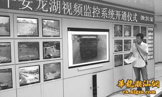本报讯(记者刘婉萍 摄影报道) 昨天上午,龙湖区委、区政府筹集1200万资金建设的重点民生工程——“平安龙湖”社会治安视频监控系统正式开通(下图)。