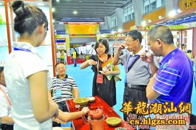 为了在众多展位中抢得眼球,我市在展厅外观上做足文章,大门上方“潮州”二字用中国红来修饰,显得古朴大气。进入展厅后,每个客人都能发现展厅用心的安排,除了必不可少的潮州单丛茶品种和泡制工艺展示外,有些企业还带来了新颖的多功能茶具产品,让海内外客人大饱口福和眼福。