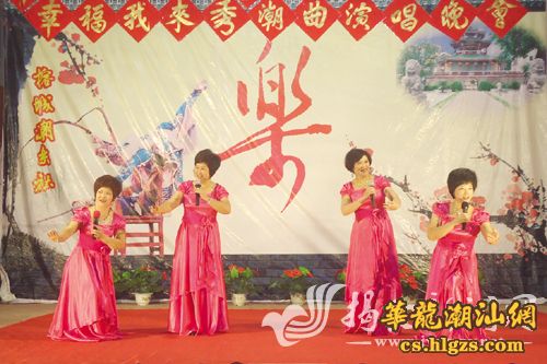 21日晚,由榕城区文化新闻出版局主办的“幸福我来秀”潮曲演唱晚会在市区学宫广场大中华戏台举行,榕城潮乐社票友们以精湛技艺和美妙曲韵,表达了人们对幸福生活、共建美好新揭阳的信心,晚会吸引了众多市民的观赏。图为潮曲女声小组唱《深情一片出心田》场面。记者 林少平 摄