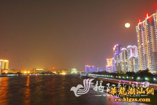 中秋佳节之夜,市区到处张灯结彩,灯火辉煌,一派喜气洋洋的气氛。图为榕江北河两岸美丽的节日夜景。 郑楚藩 摄