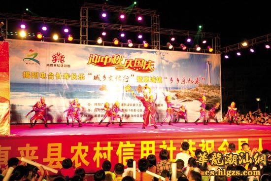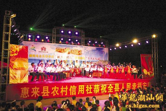 由揭阳电台和惠来县惠城镇共同举办的“揭阳电台长寿长乐‘城乡文化行’暨惠城镇‘乡乡乐起来’文艺晚会”,近日在该县慈云文化广场举行(见图。陈锋 摄)。
