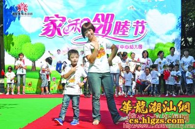 昨天,潮州首届“南粤幸福活动周――家和邻睦节”活动正式展开,全市多所小学、幼儿园纷纷组织“亲子游乐”活动。家长和孩子们通过参与活动,增进亲子感情,营造温馨幸福的家庭氛围。记者在枫溪区中心幼儿园活动现场看到,家长和孩子一起做礼仪操,一起穿着DIY彩绘亲子装走T台,一起在瓷艺坊合力创作瓷艺……场面充满浓浓亲情。图为家长带领孩子走上T台展现自信阳光个性。 本报记者 黄春生 摄