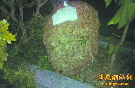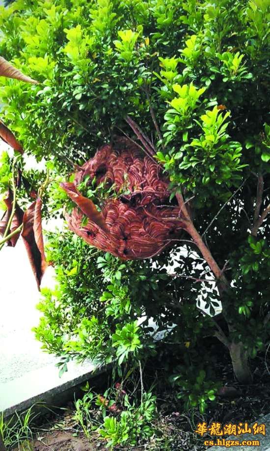 据了解,1个多月前,洪先生发现家里天台一株1米多高的树上竟然有一个篮球大小的褐色块状物,仔细一瞧竟然是一个马蜂窝,不时可见马蜂钻进钻出。由于一家人并不经常在此居住,洪先生也没太在意。最近,洪先生意外地发现,这个马蜂窝体积急剧膨胀,再不清除后患无穷。