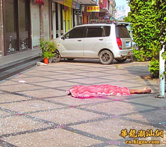 今晨,金禧花园金楠苑1栋发生一起坠楼事件。记者在现场看到,死者尸体已经被布盖住,旁边有一大滩血迹(见图),人行步道上散落了许多玻璃碎片。据周围群众介绍,坠楼的是一名年纪约三四十岁的男子,身上仅穿着一件恤衫和一条短裤。据办案民警称,坠楼男子是金楠苑住户,是清晨四五时坠楼的。具体死因有待警方进一步调查。