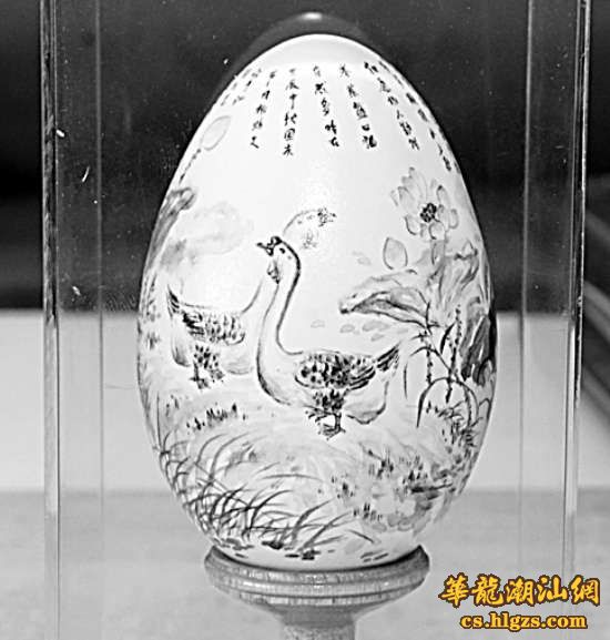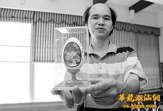 本报讯 记者林晓彬摄影报道:澄海民间艺人杨焕文以画鹅蛋著称,曾接受中央电视台等多家媒体采访报道,不断钻研的他不再满足在鹅蛋壳上作画。最近他又再推新作,首创在鹅蛋壳内壁中作画,“蛋中画”让人惊叹。