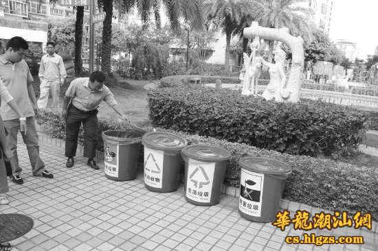 本报讯(记者林彦恂 曾春乐 实习生 黄绮瑜 摄影报道)家里的废电池、废温度计应该放进有害物质还是可回收的垃圾箱?近期,市区龙禧花园物业管理处率先在小区设置了“厨余”、“可回收”、“有害”和“不可回收”等四类垃圾桶供居民使用,在社区里试点推广宣传,提高居民的垃圾分类意识,使大家对垃圾的“归属”不再“晕头转向”。