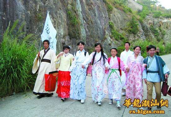 昨天,一群身着汉服的少男少女来到龙泉岩登高望远,迎接即将到来的重阳佳节。记者了解到,他们都是来自汕头汉服社的成员。每逢传统节日,他们都会举办汉服活动,以这种方式来表达自己对传统民族文化的热爱。