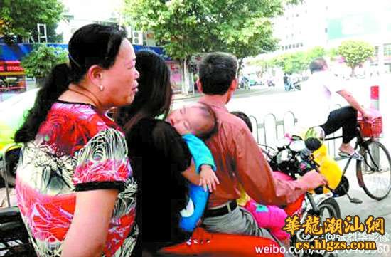 19日,东厦路口,这辆摩托车一共乘载了5人,其中还有两名儿童,驾驶员不戴头盔堂而皇之招摇过市,路人不禁为他们捏了一把冷汗。